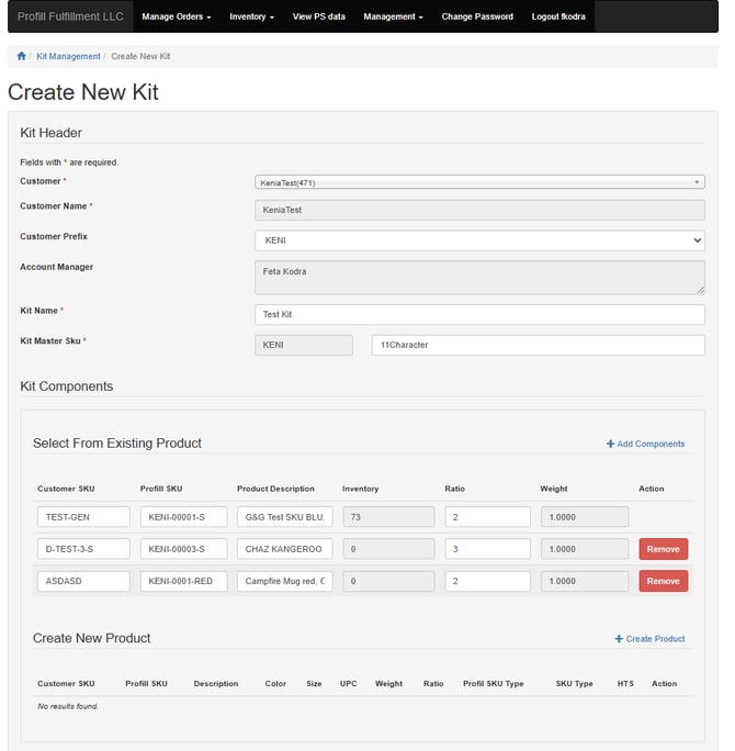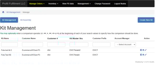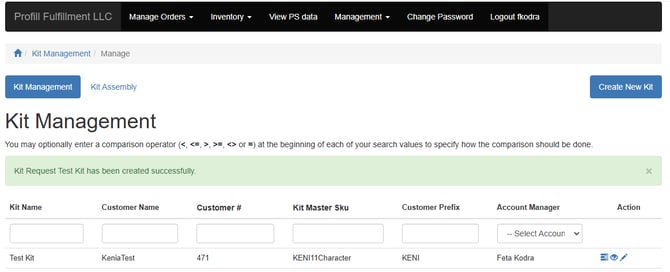- You will be redirected to the Kit Management page with a success message on your new kit
